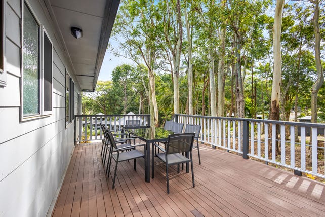 Each of the four well-sized bedrooms include built-in robes and ceiling fans, all conveniently serviced by two bathrooms. Outside, expansive balconies are at the front and back of the home which invite you to relax with your morning coffee or host memorable gatherings, all while taking in the lush garden surroundings.