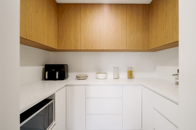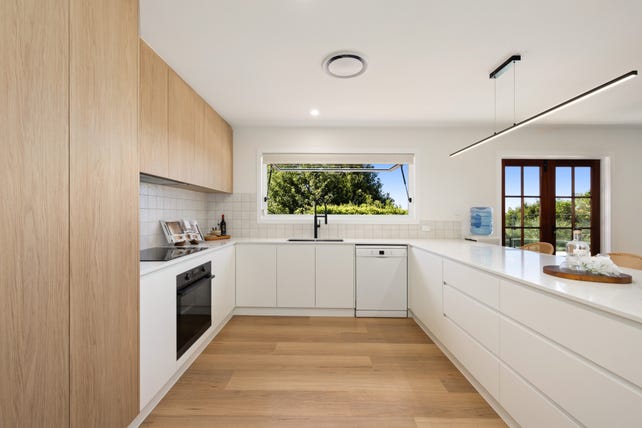 The heart of the home is a sophisticated kitchen that combines beauty with function, appointed with premium appliances, a sleek butler’s pantry, and a striking servery window with gas struts and V-lam hush glass that connects seamlessly to the expansive deck. This outdoor space is ideal for alfresco entertaining, overlooking the pristine saltwater swimming pool and the rolling hills beyond. Remote-controlled awnings provide effortless shade, making it a space for all seasons. Every inch of the residence has been curated to blend past character with contemporary ease.