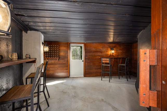 The outdoor areas are just as impressive. The sparkling in-ground swimming pool is framed by frameless glass fencing and adjoins a custom-designed glass-walled sauna that captures sweeping views of the countryside. A dedicated firepit zone creates the perfect backdrop for evenings under the stars, while the decked alfresco space offers a tranquil spot for coffee at sunrise or long lunches with friends. Tucked away is a hidden gem—a private wine cellar and bar retreat, ideal for quiet moments or lively conversation.