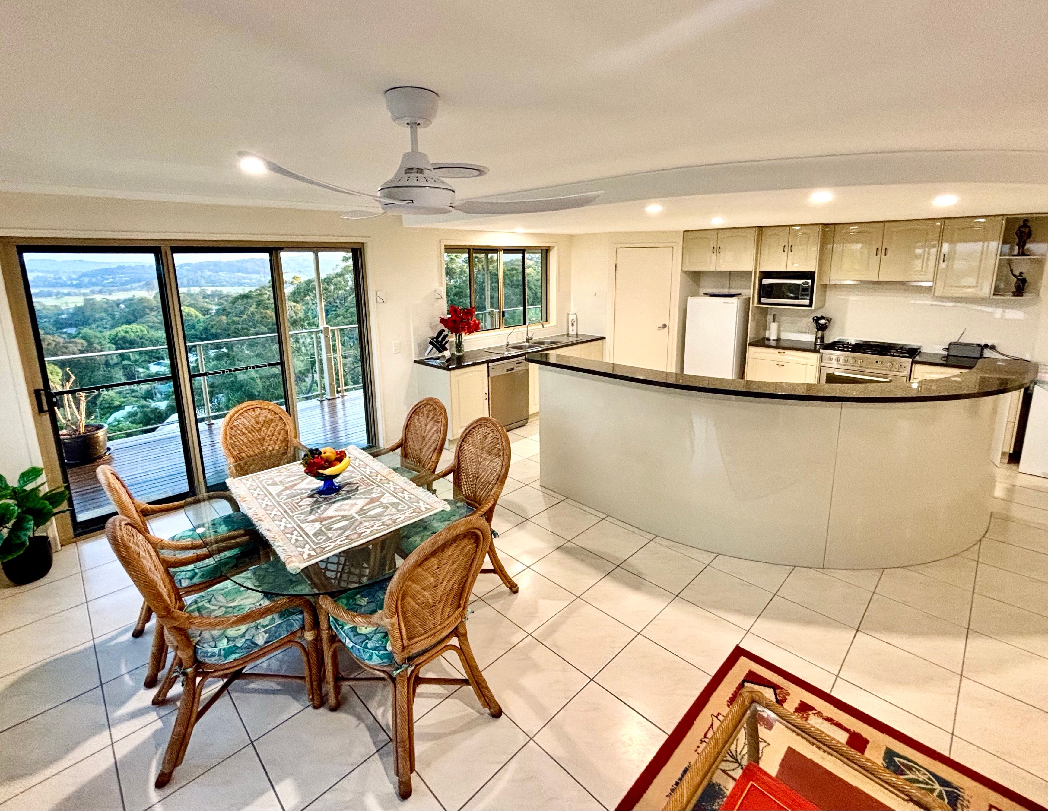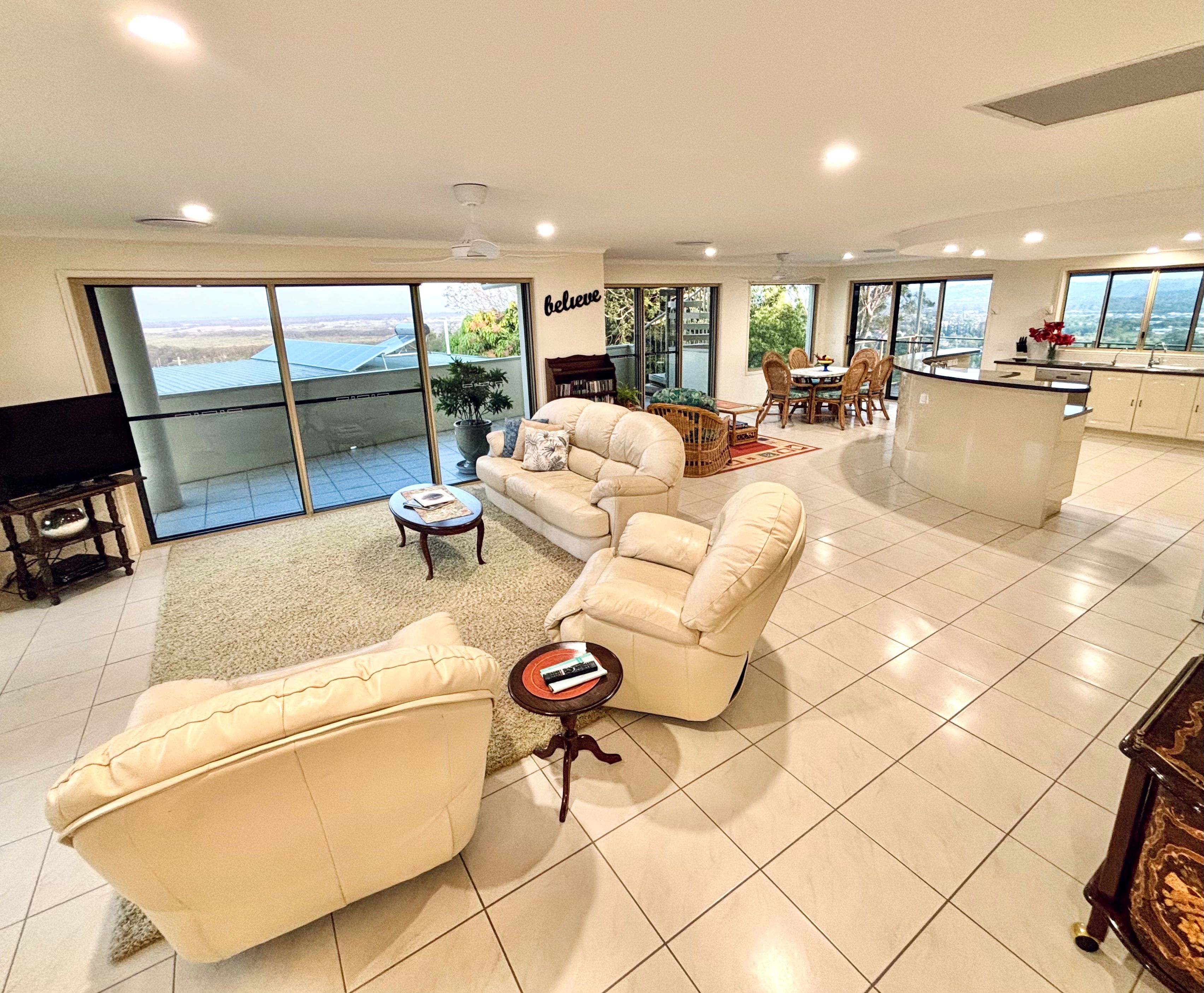 Heavenly views from this ‘first time on the market’ architecturally designed home perched atop a peaceful Bli Bli hill, offering 270-degree sweeping ocean and land views from Noosa, Mount Coolum, Maroochydore, and the coastal hinterland. This two-storey home provides a perfect blend of classic elegance and modern comfort. It also features expansive views from all living and bedroom areas that open onto extra-large decks for seamless indoor-outdoor living. Upstairs Retreat Spacious open-plan kitchen, dining, and lounge area bathed in natural light. Stunning views from the spacious master bedroom, which includes a two-sink ensuite and walk-in robe. A generous second bedroom is suitable for use as a bed-sitting room and features a second bathroom. The large office is ideal for work-from-home convenience while enjoying the view from your desk. The third-storey viewing platform offers a 340-degree unparalleled vista, making it a perfect place for meditation or watching the sunrise/sunset while enjoying evening lights and night stars. Downstairs Haven Versatile living area and kitchenette suitable for dual living, games, or a media room. The main large bedroom duplicates the magnificent views enjoyed upstairs and opens onto an expansive deck. The second double bedroom opens onto a garden area and has its own bathroom. A large double garage provides plenty of storage and features an epoxy floor. Premium Features for Discerning Owners Tinted windows, roll-down shutters, full insulation, and ducted air conditioning ensure year-round comfort in this beautifully situated northeast-facing home. Sipping coffee while sitting on the deck overlooking a large, easy-care sloping garden and taking in breath-taking views is a great way to enjoy life with friends. Location Advantages Nestled in the heart of the Sunshine Coast, this home offers the perfect balance of seclusion and accessibility. Enjoy proximity to pristine beaches, world-class golf courses, shopping centres, schools, and easy access to the Bruce Highway for travel north or south to Brisbane.