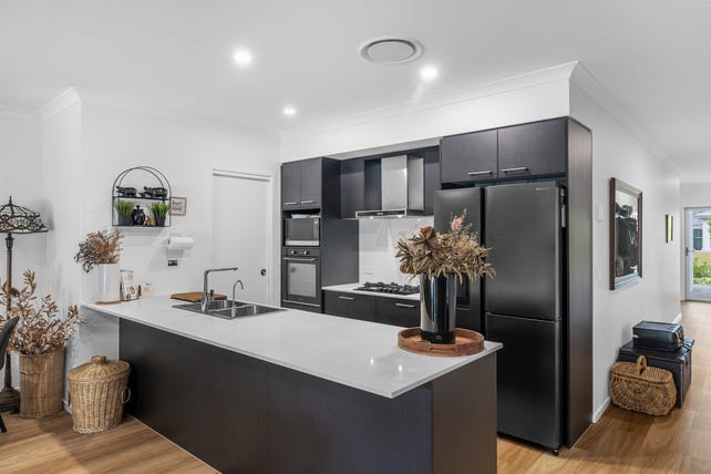 This stylish, contemporary home delivers comfort and practicality with high 2.25m ceilings, ducted air-conditioning, and an open-plan design that seamlessly connects indoor and outdoor living. The well-appointed kitchen features stone benchtops, a Euromaid gas cooktop and electric oven, breakfast bar, and a butler's pantry, flowing into the light-filled living and dining spaces.
