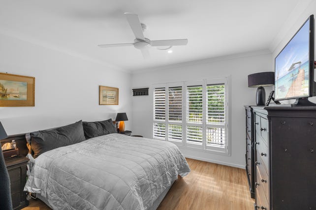 Offering four bedrooms, each with ceiling fans and built-in robes, the master suite includes a walk-in robe, plantation shutters, and sleek en-suite. A second living area/media room adds flexibility for families. The main bathroom is modern and spacious with a built in bath and separate toilet.