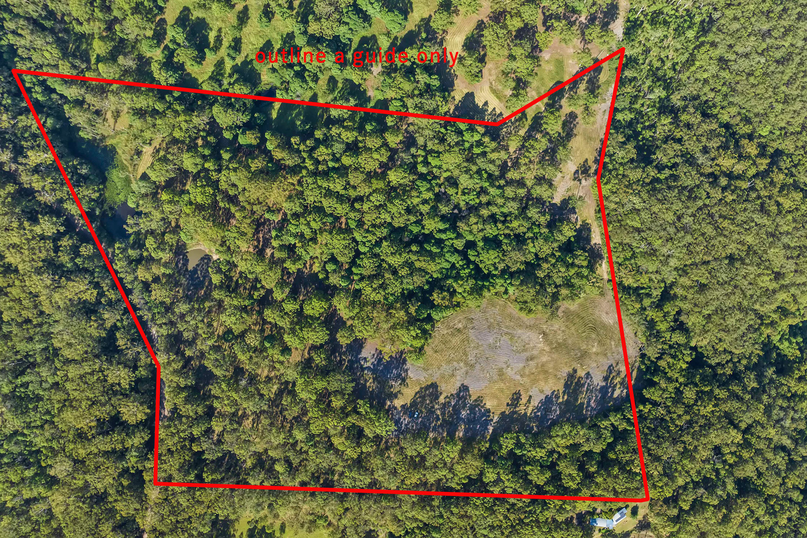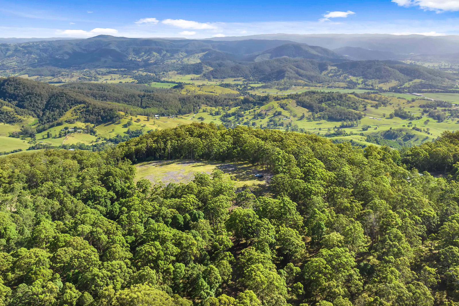 A substantial cleared area is taking advantage of the views and would support a large house & large sheds.