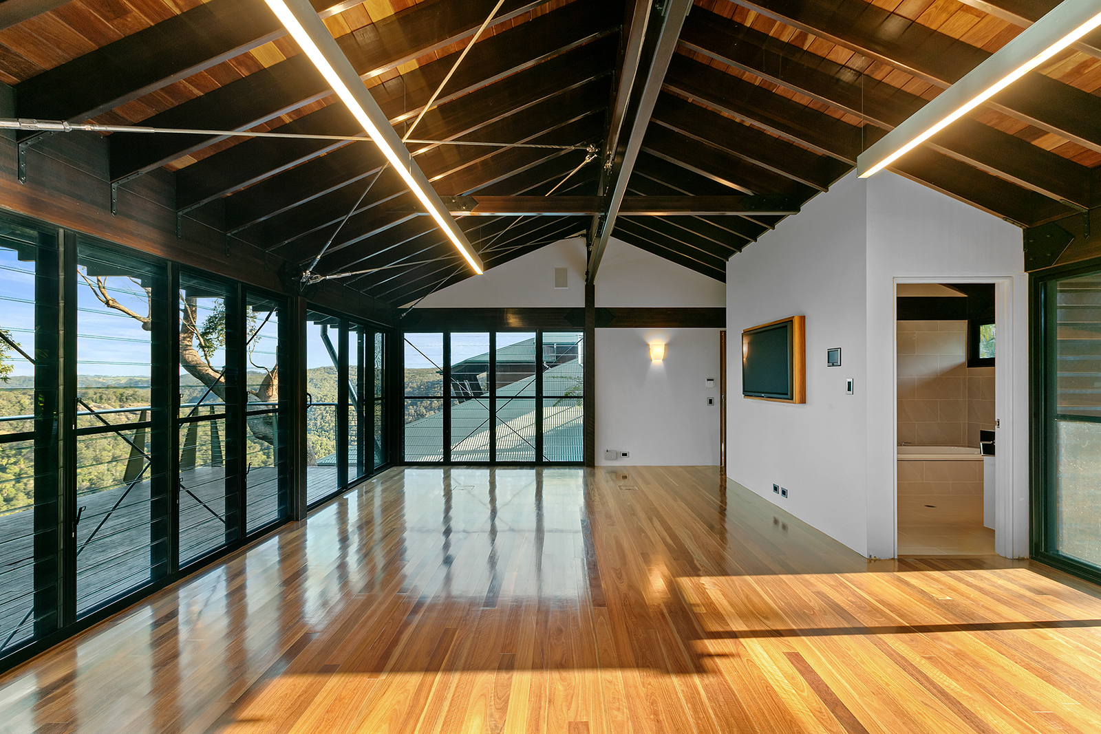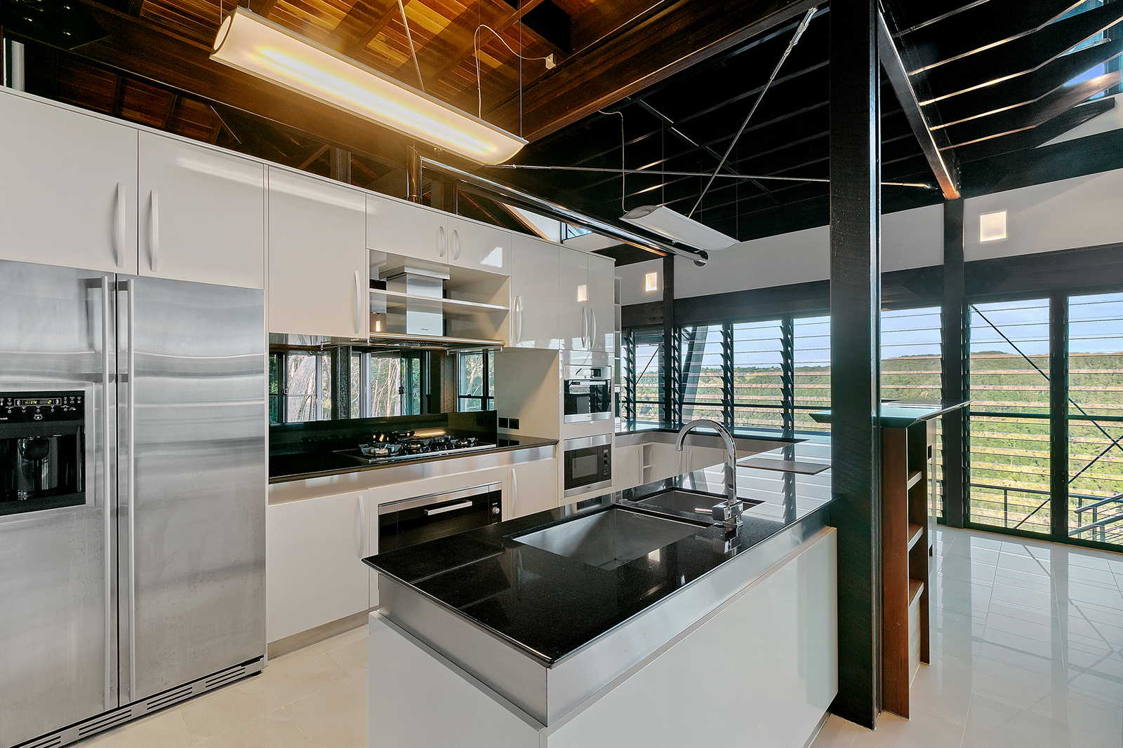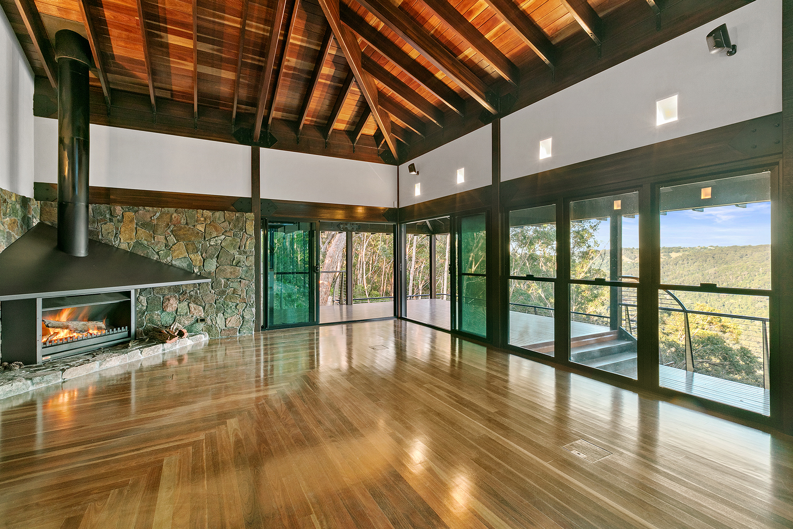 The estate oozes exclusivity with its use of impeccable stone masonry, sturdy exposed spotted gum timber, and gleaming stainless-steel fittings throughout. These high-quality materials lend the residence an unmistakably sophisticated and executive touch.