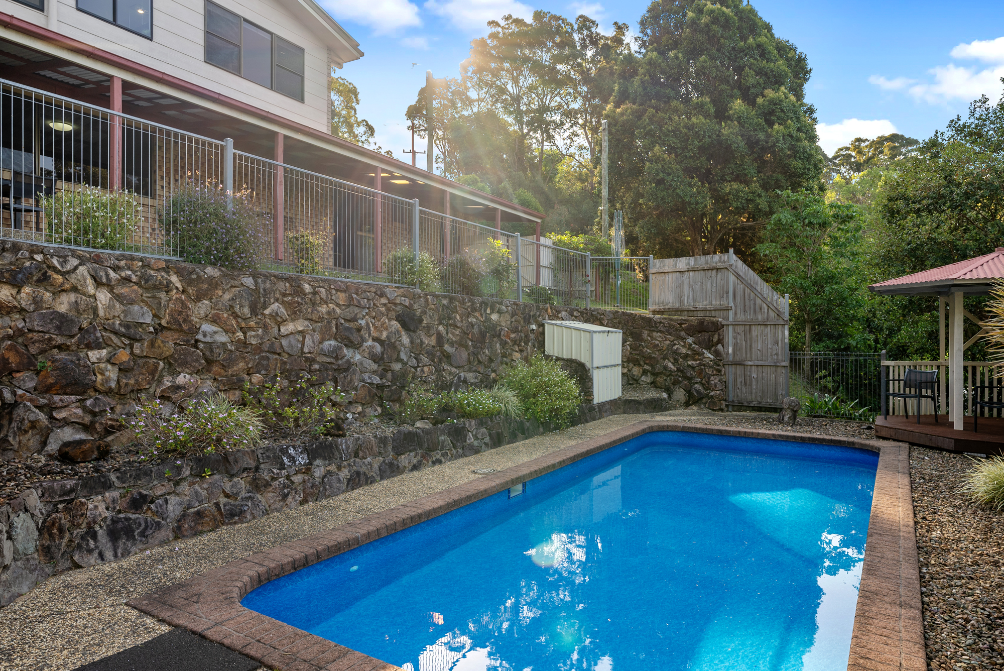 The pool is a bushland paradise, with privacy surrounded by trees. Watch the kids play from your shaded gazebo while the cockatoos fly overhead.