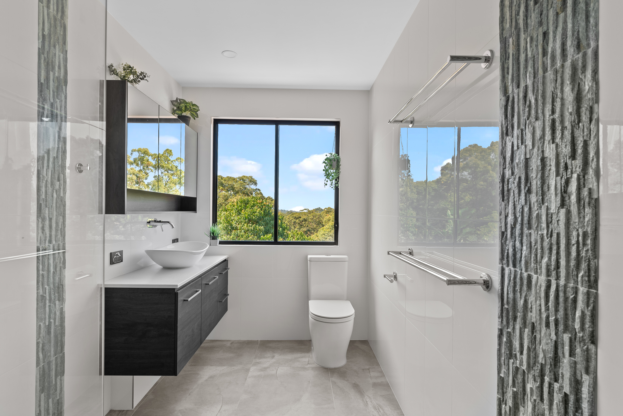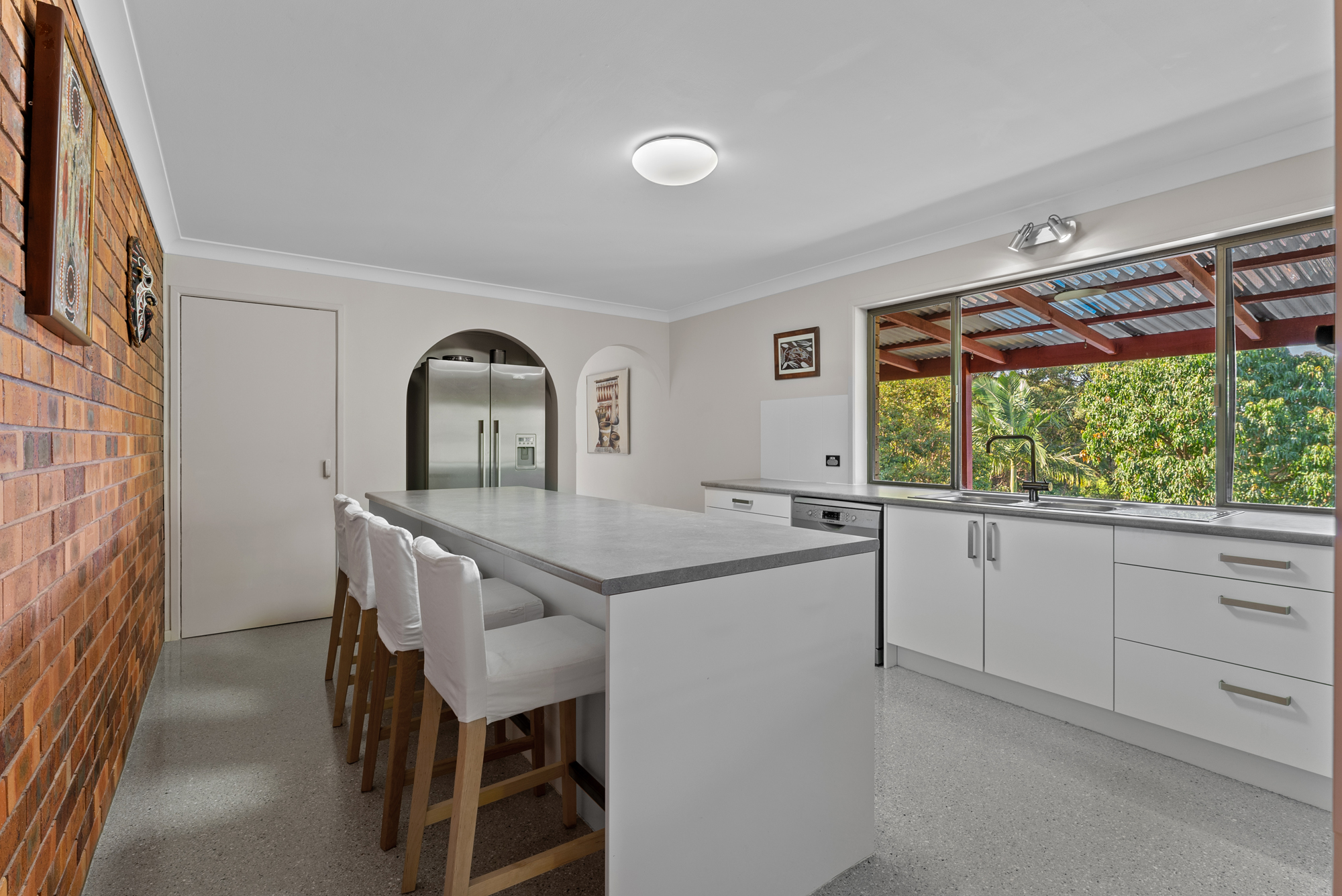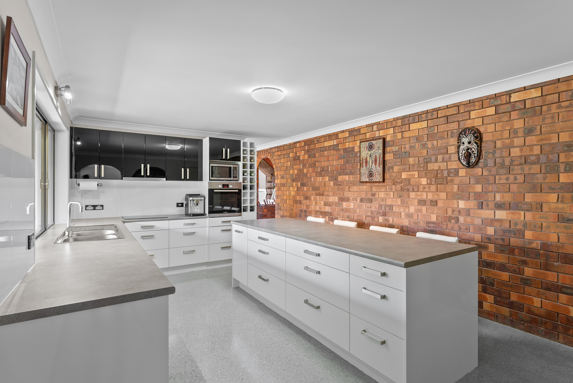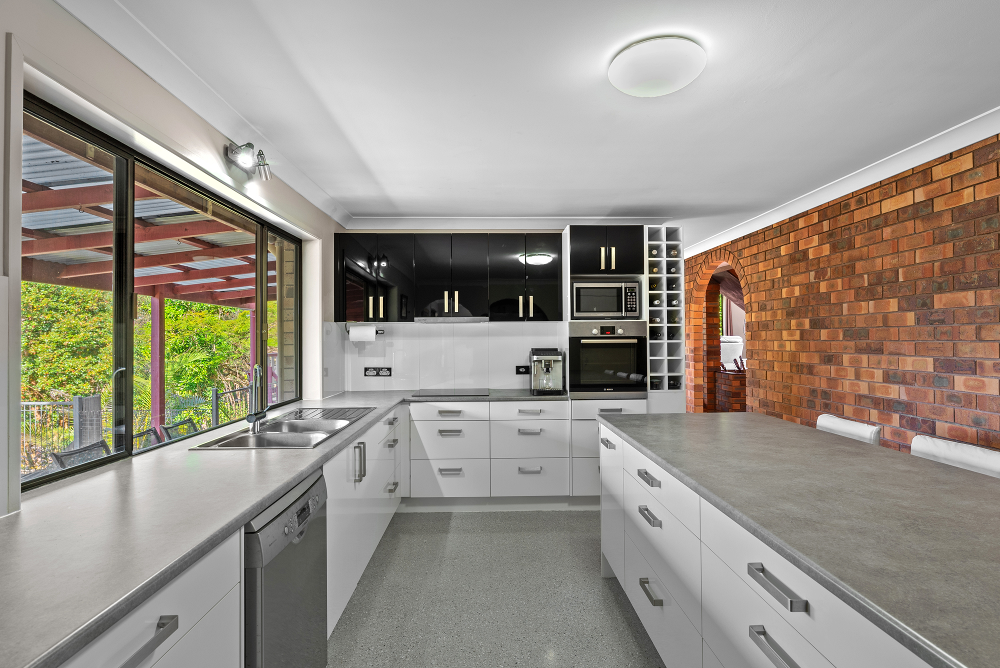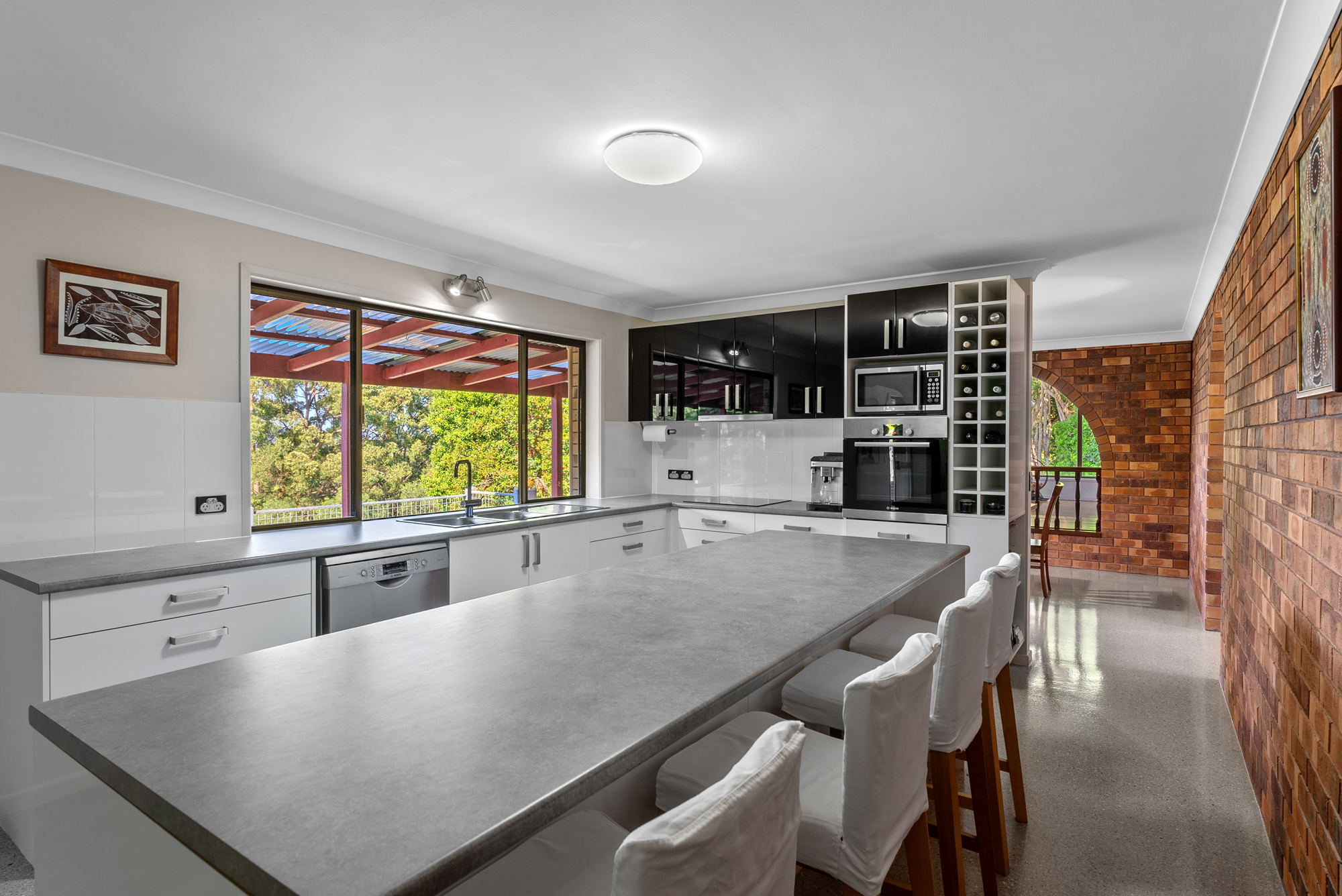 Beautifully renovated, upgrades include a high-quality kitchen with a large pantry and laundry area. Stunning bathrooms feature expanded windows facing your own bushland. With two living areas downstairs and lush carpet upstairs (with wood flooring underneath) the noise inside the house is minimal. A secluded fifth bedroom downstairs is the perfect guest room or office. The foyer, dining, kitchen, laundry, and garage have seamless epoxy flooring for complete ease of cleaning. Exposed brick provides impressive and maintenance-free feature walls throughout the home.